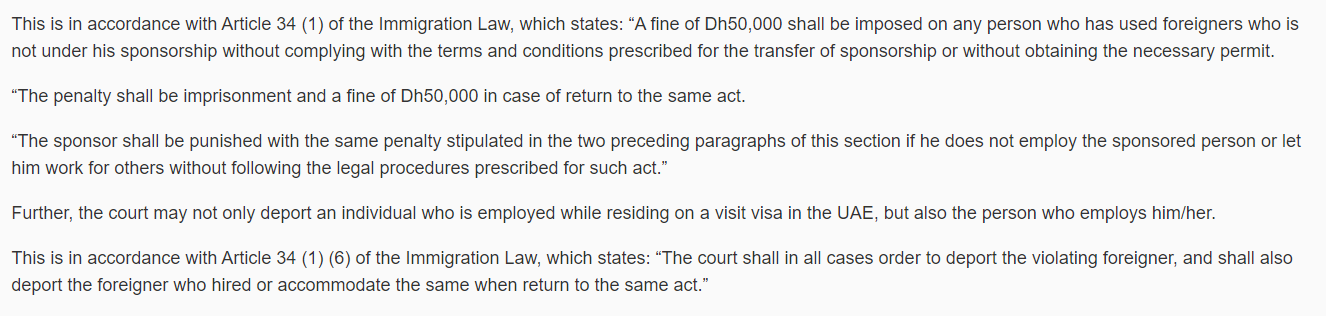 But still you are confuse and worrying the legal way in working in Dubai. Let us not complicate it, as the UAE Labor Law simply state the direct answer with this question, which is; Working on a visit visa in Dubai is Illegal.